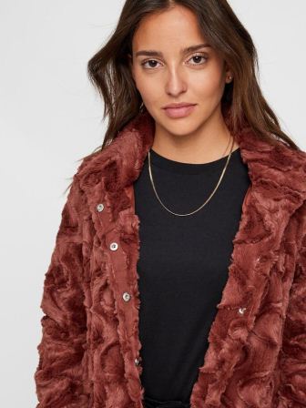 10203269 JACKET VMCURL HIGH NECK FAUX FUR JACK NOOS MAHOGAN.