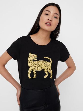 – Cuello redondo y estampado de leopardo
